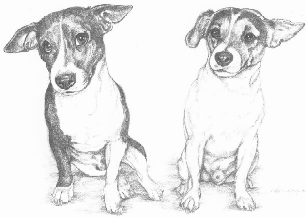 pencil Two photographs were combined to create this delightful portrait of two young Jack Russell dogs, which the owner said were inseparable.