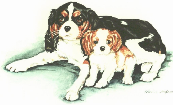 watercolour This Cavalier King Charles Spaniel family portrait is in fact the result of combining two photographs. Even for one pet it's a good idea to send several pictures, mentioning which pose is your favourite.